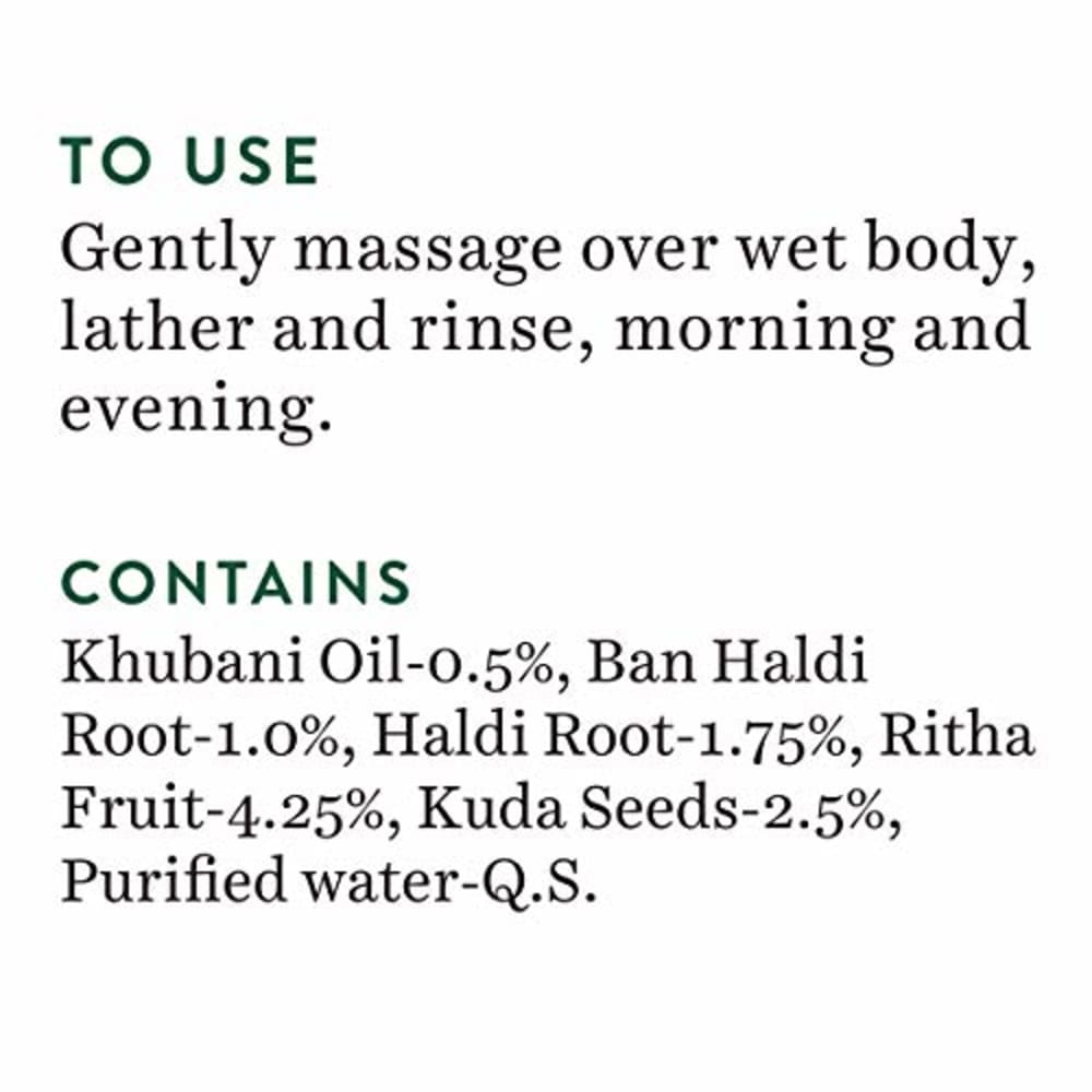 • Usage: Gently massage over wet body, lather and rinse, morning and evening.