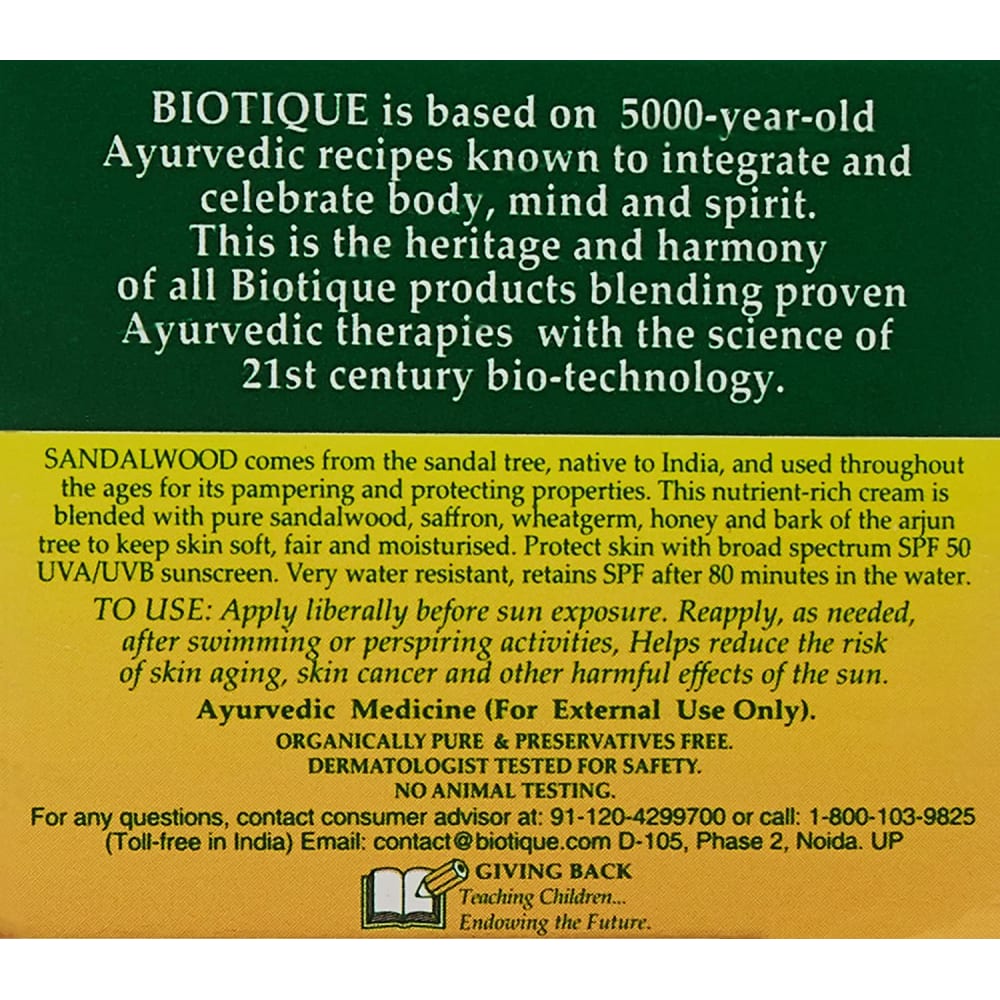 This nutrient-rich cream is blended with pure sandalwood, saffron, wheat germ, honey and bark of the Arjun tree to keep skin soft, fair and moisturized. Protects skin with broad spectrum spf 50 uva/uvb sunscreen. Very water resistant, retains spf after 80 minutes in the water.