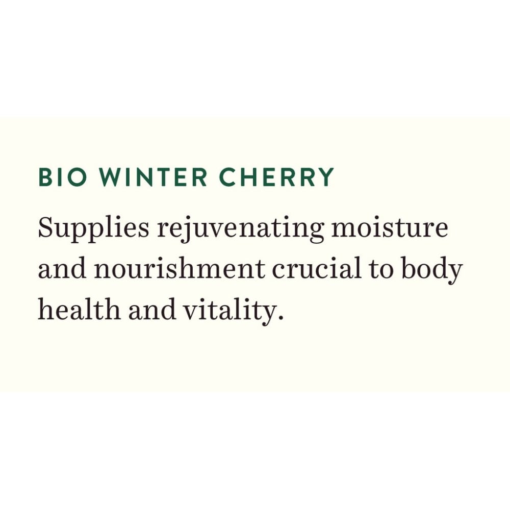 This nourishing lotion is a blend of pure winter cherry, sunflower, safflower, musk root and almond oil, to supply moisture and nutrients crucial to body health and vitality. Soothes, softens and revitalizes even weather-roughened body skin, as it promotes elasticity, suppleness and moisture balance.