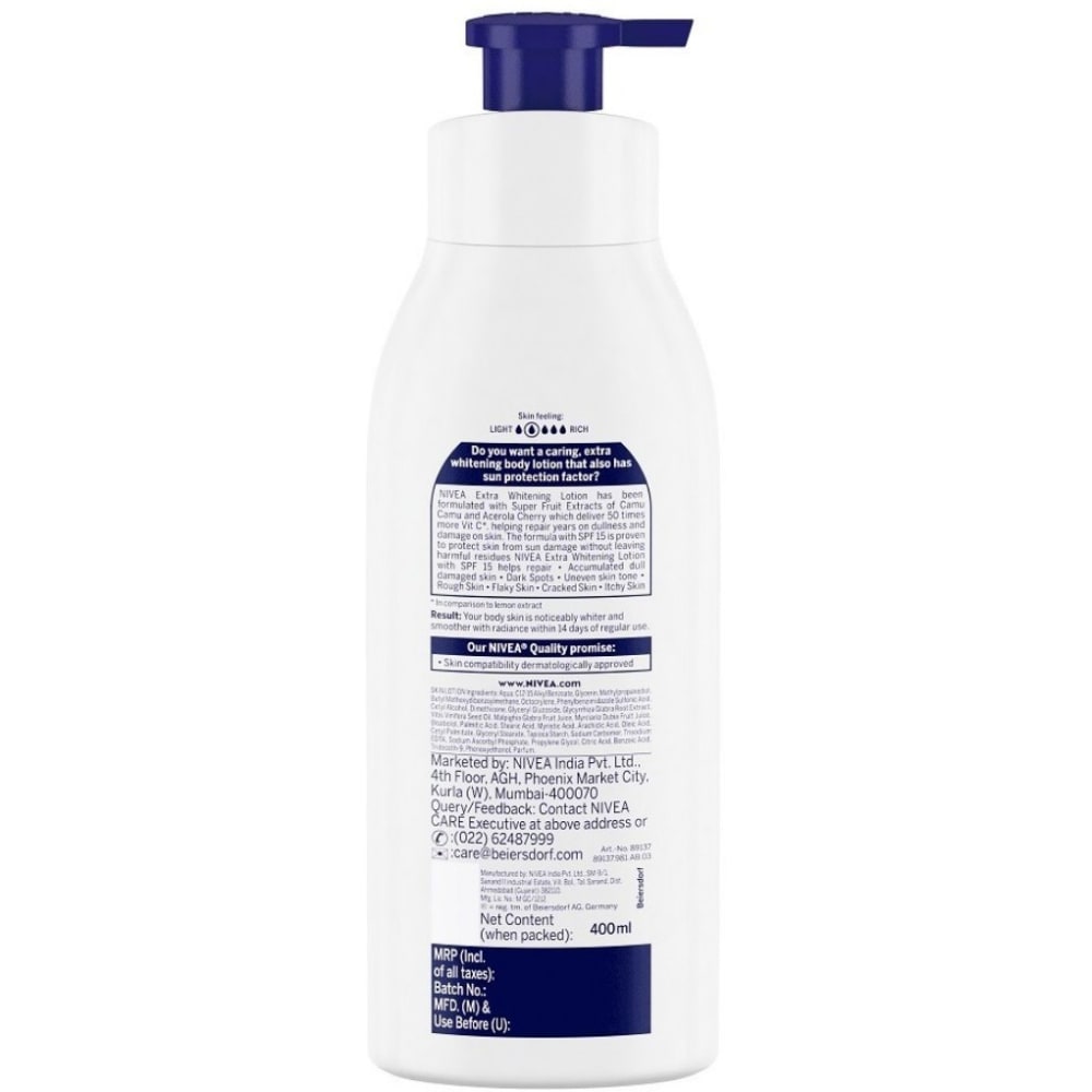 Dermatologically tested as safe for use on the skin, and free of alcohol content, this NIVEA Extra Whitening Cell Repair Body Lotion knows exactly what your skin needs during humid, summer days. It intensely moisturises your skin without leaving a heavy film of grease on it.