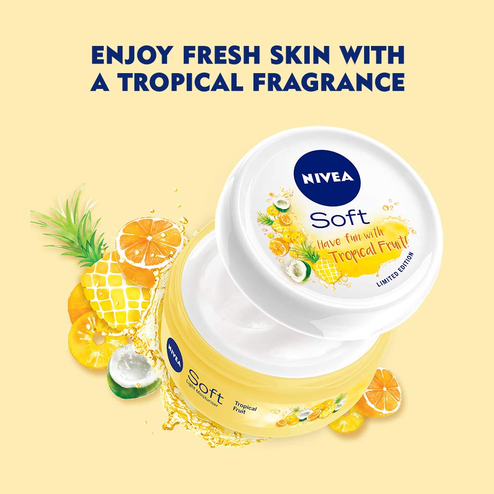 Enriched with jojoba oil and vitamin e, Nivea soft is a non-greasy moisturizing cream that refreshes your skin, making it smooth, soft, supple and healthy. The light texture and fast-absorbing formula make it spread easily on your skin with just one application. It is highly effective on face, hands and body. This all purpose cream is specially made to care for all skin types in all seasons. Now indulge in the goodness of Nivea soft in three exciting new fragrances. So get ready, find your scent.