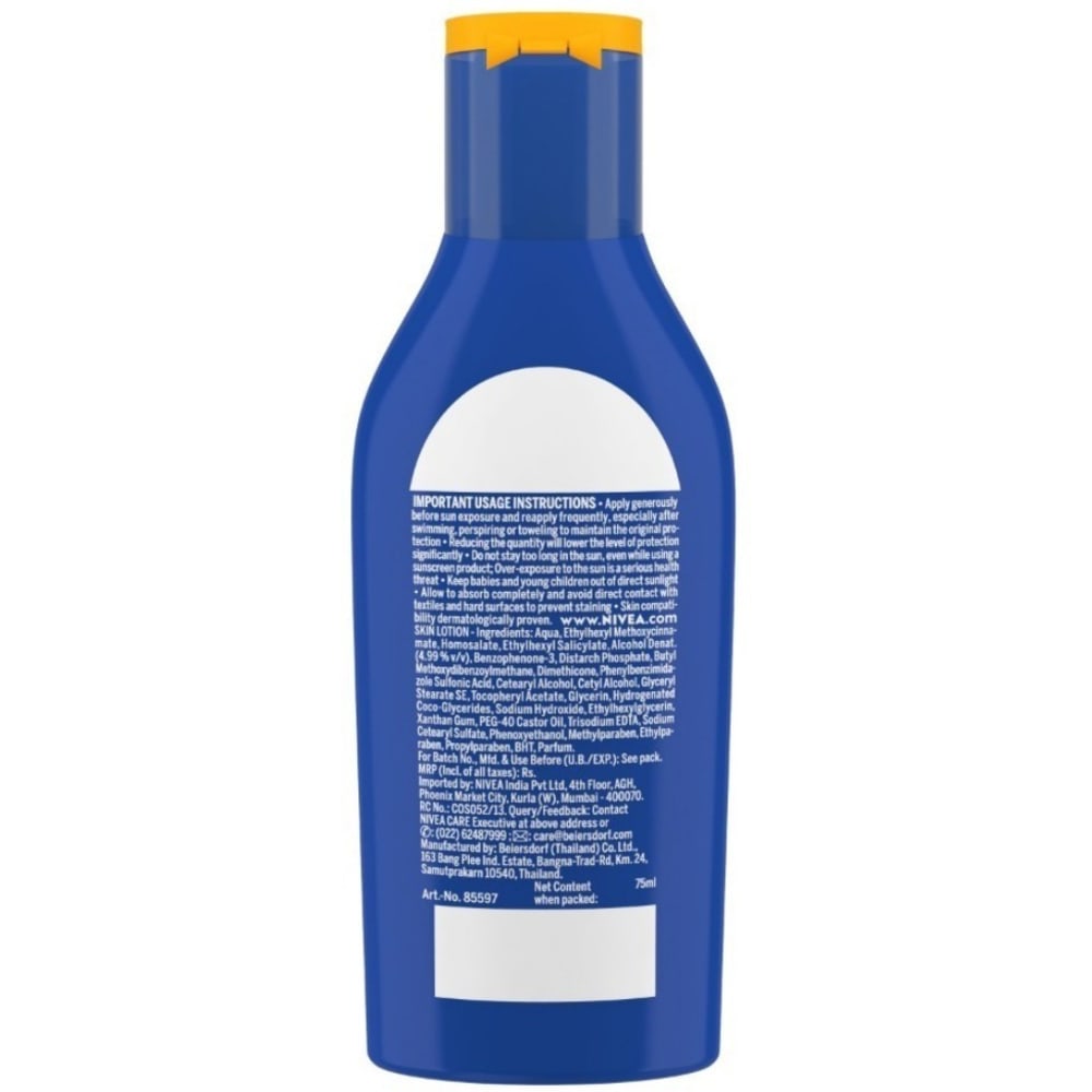 The Nivea Sun moisturising lotion comes with SPF 30 and has been designed to provide instant protection to your skin from UVA-UVB rays.
