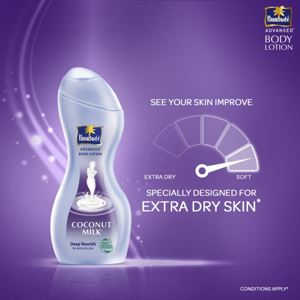 - Apply the Parachute Advansed Deep Nourish Body Lotion generously all over your body after a bath or shower or before you go for a sweet night sleep and massage in circular motions, paying special attention to any dry areas.