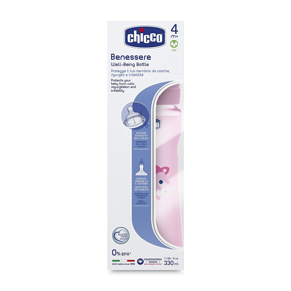 Chicco 330Ml Wellbeing Fast Flow Feeding Bottle Pink