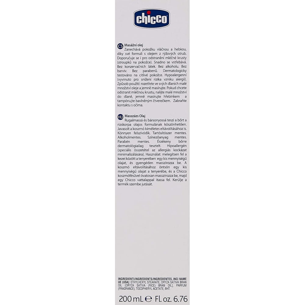 This rice bran massage oil is safe for use on the skin of newborn babies. Clinically tested and declared safe for daily usage, the Chicco massage oil for baby is free from harmful chemicals, preservatives or dyes that are harmful your baby's sensitive skin. With no petroleum or paraffin, the Chicco massage oil is safe to use on sensitive skin, without any risk of damage to your baby's delicate skin. Available in compact packaging of a 200ml bottle, this alcohol free massage oil is extremely convenient to carry around when you are travelling with your baby.