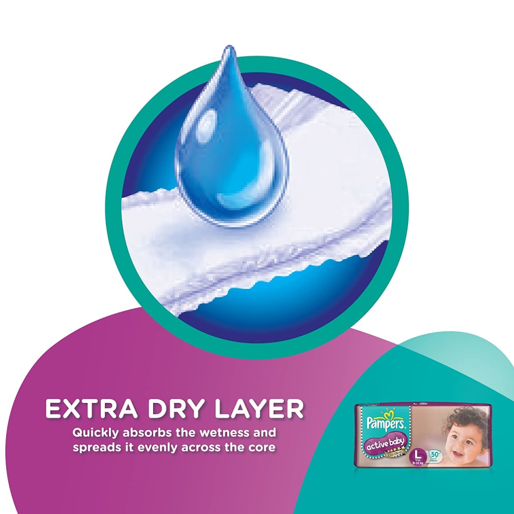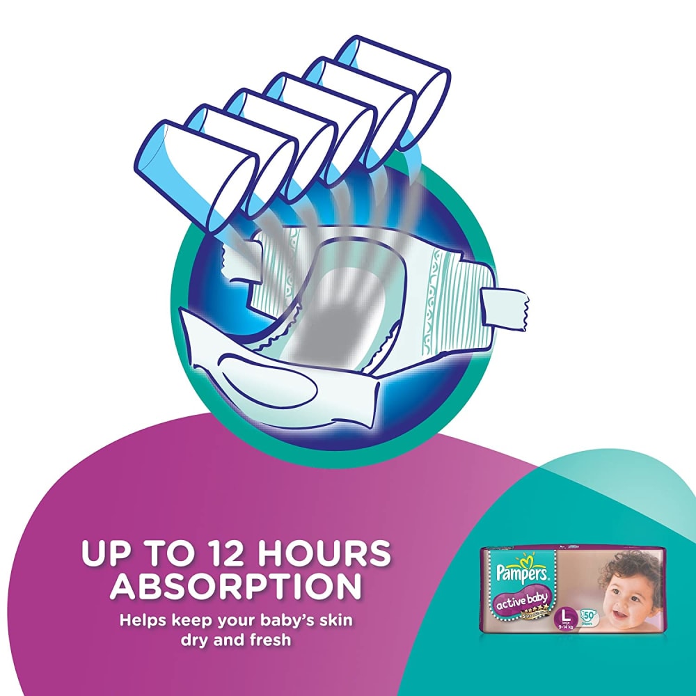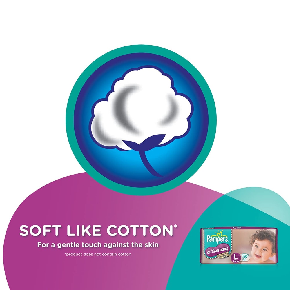 Keep your baby's skin delicate with 5 star skin protection. Pampers Active Baby comes with 5 features in just one diaper. 12 hours dryness, baby lotion, cottony softness, breathable cover and comfortable fit.