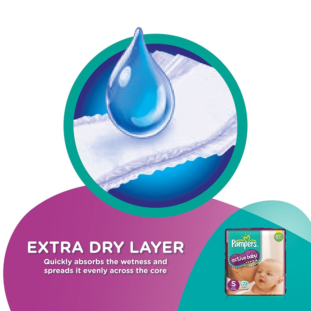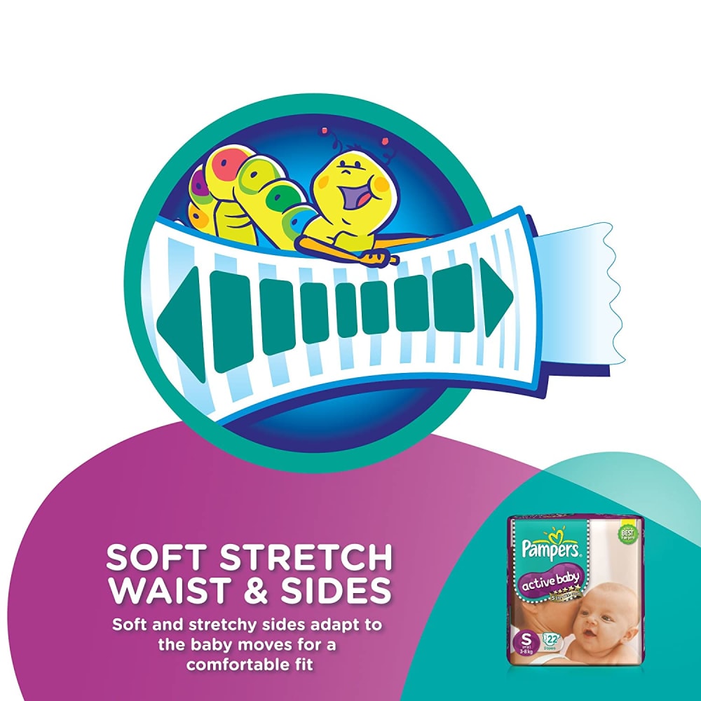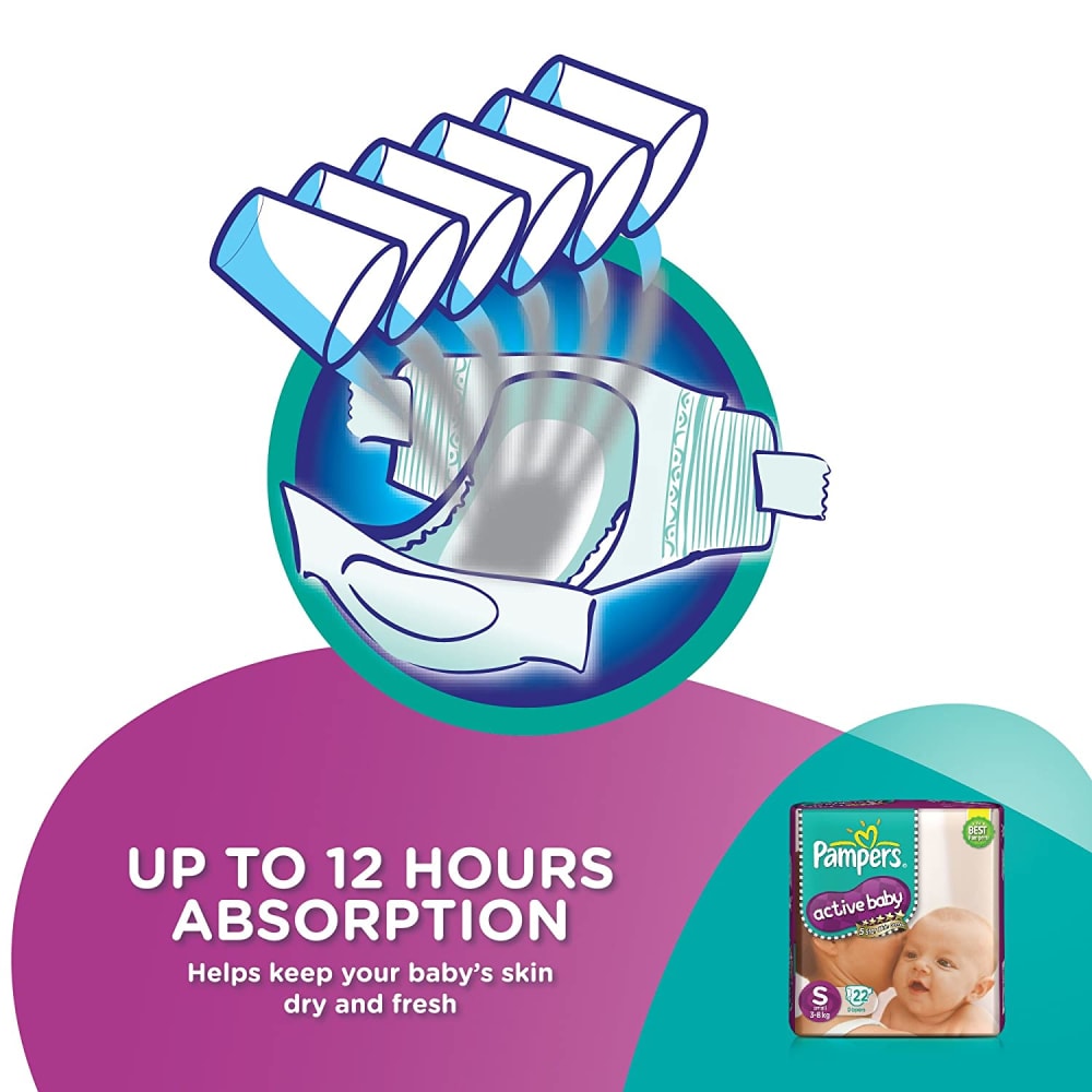 Keep your baby's skin delicate with 5 star skin protection. Pampers Active Baby comes with 5 features in just one diaper. 12 hours dryness, baby lotion, cottony softness, breathable cover and comfortable fit.