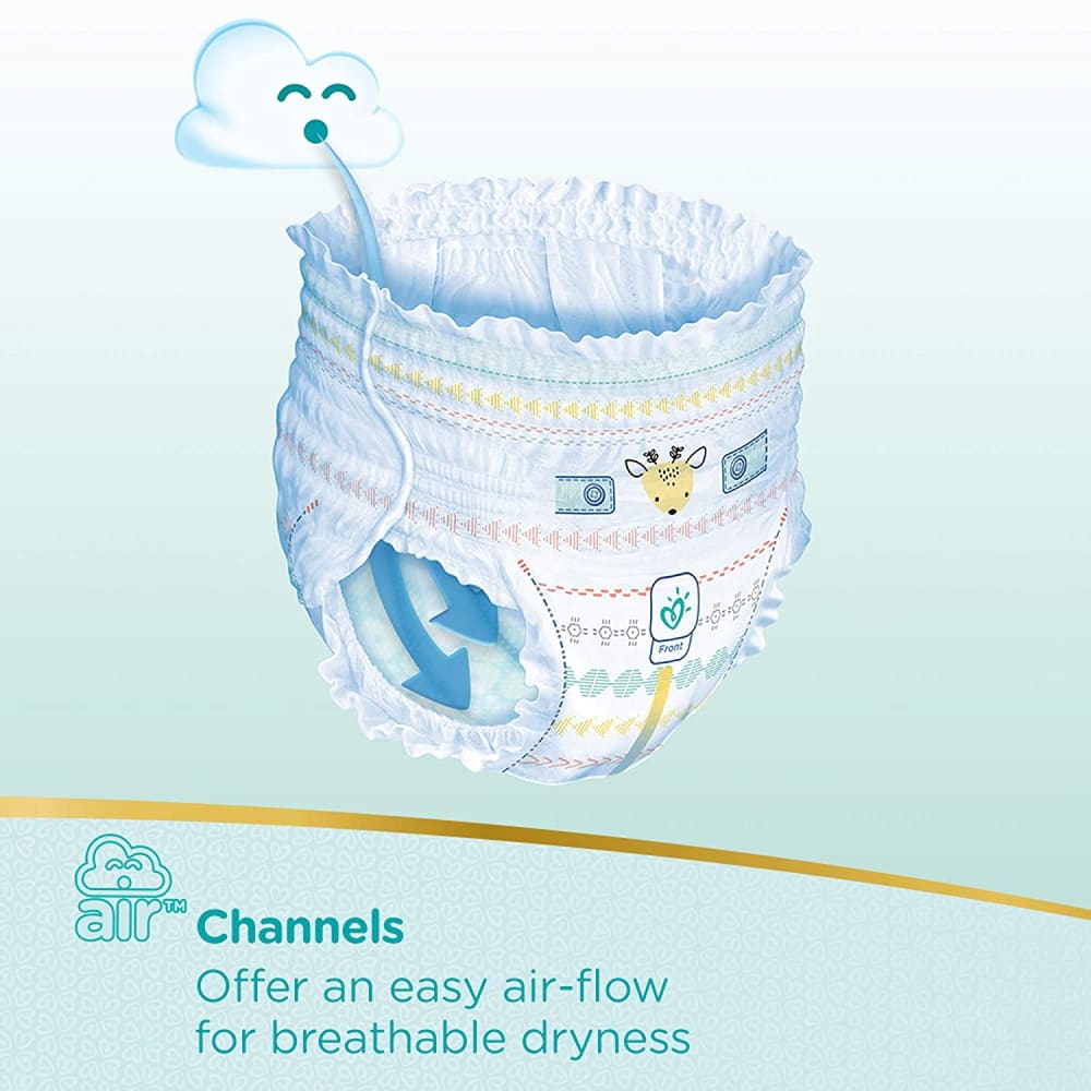 New Pampers premium pants with cotton like soft materials is best for your baby’s delicate skin. Pampers premium pants contain lotion with aloe vera and 3 air channels which helps your baby’s skin breathe. Experience 5 star comfort with unique added features like wetness indicator which turns yellow to blue indication when you may change and disposal tape which helps you in easy disposal of the diaper. Pampers is the no.1 choice of doctors for diapers. Pampers premium pants are available in new born (nb) s, m, l, xl and xxl sizes.